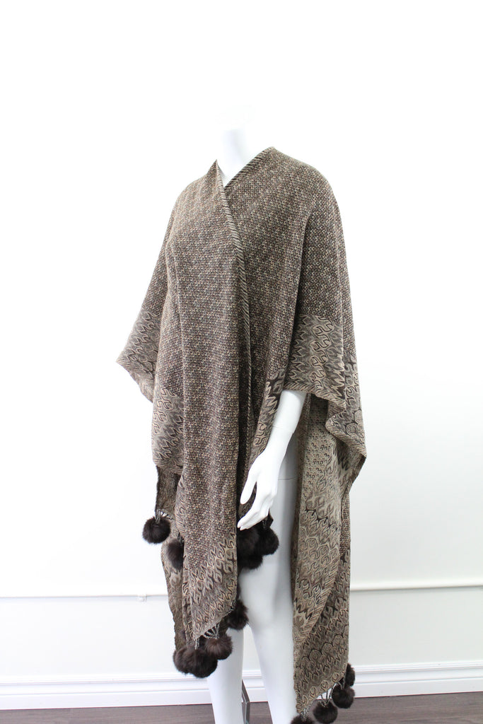 Pure Wool Poncho Fur Pompoms