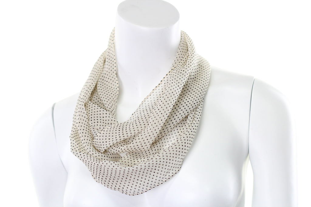 Scarf Chiffon Infinity Loop Polka Dot Black and White
